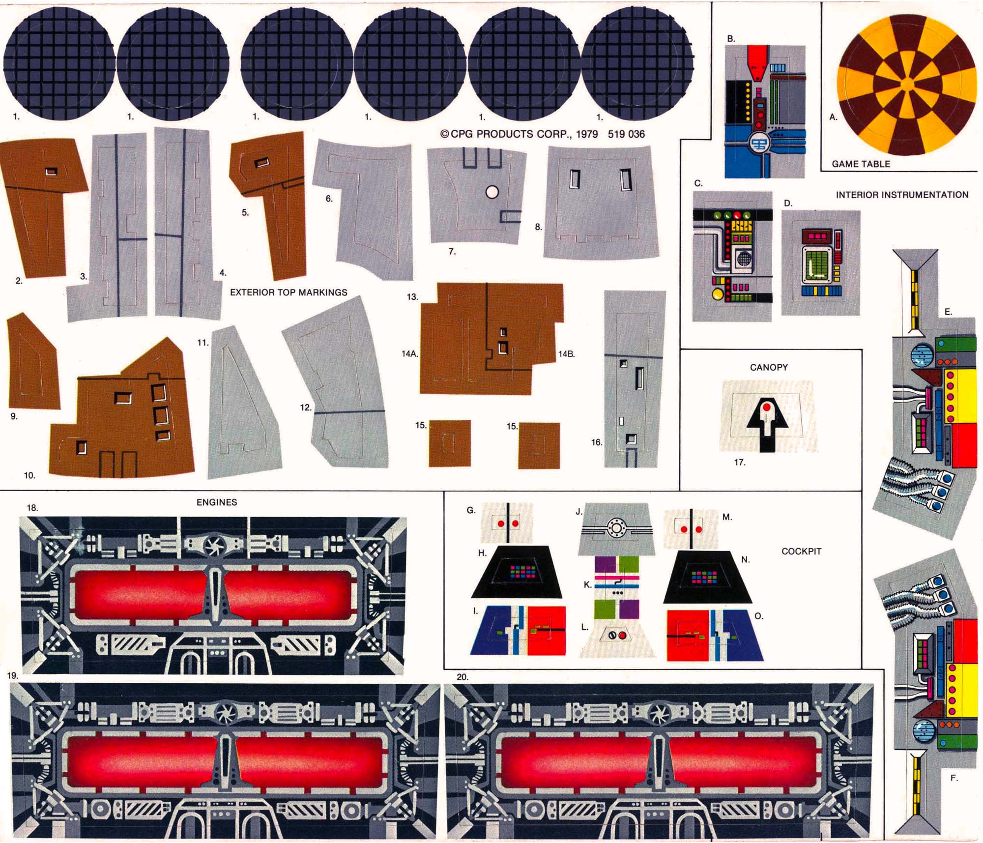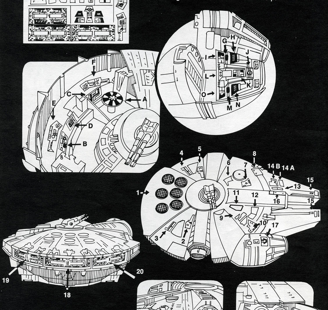 Here's the sticker placement diagram for the Falcon, as well as a detailed view of the sticker sheet: